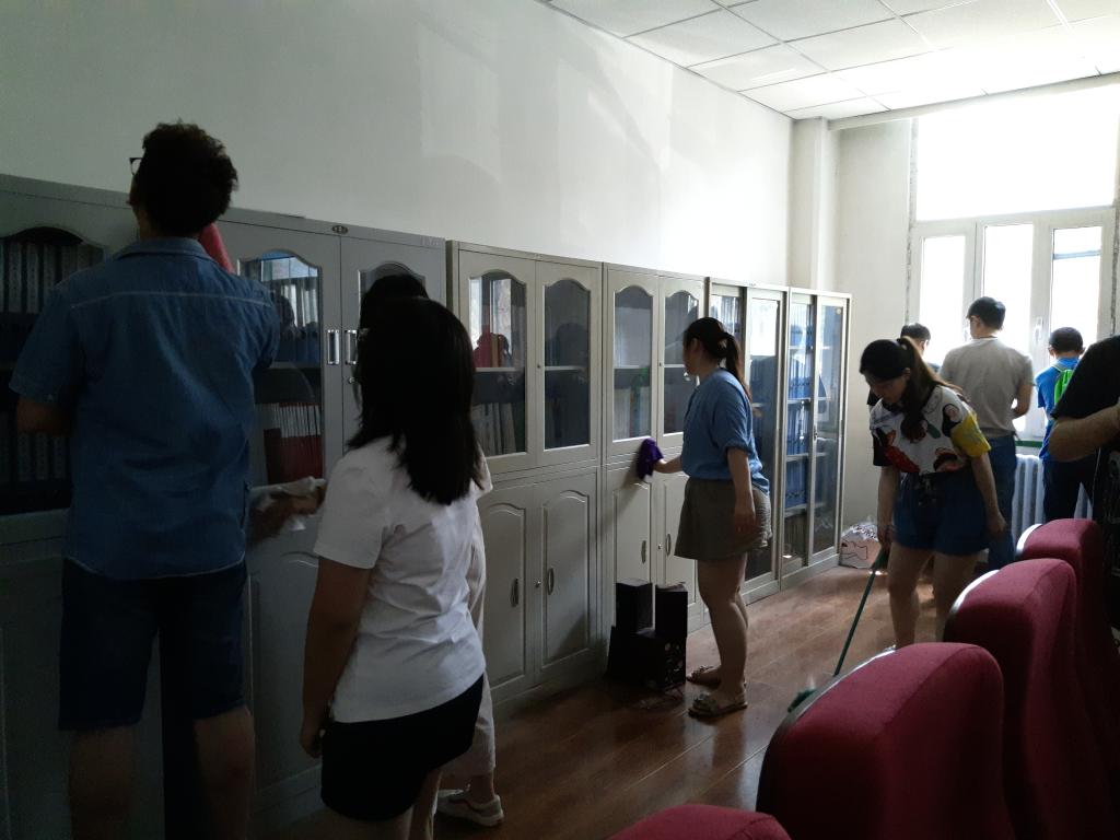 最后,为了让积极分子们进一步认识到在实践中提升和完善自我的重要性,所有积极分子一同认真地打扫了流行病与卫生统计学会议室。