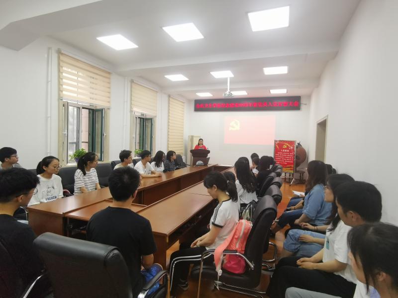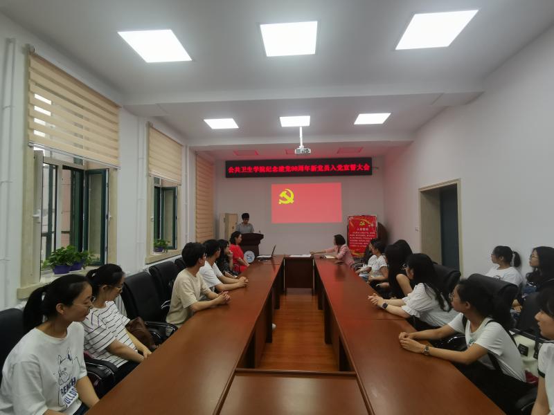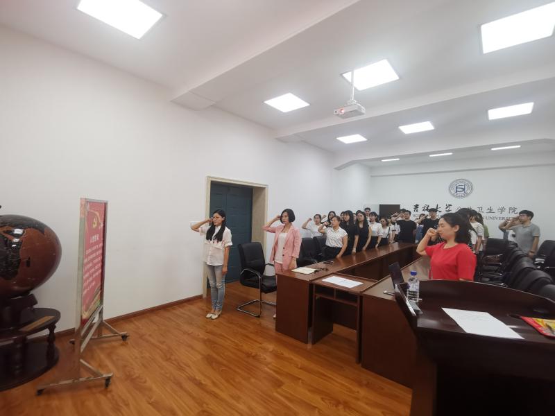 在庄严的《国际歌》后,会议正式拉开序幕。由曲超同志宣读了新党员名单。全体新党员在霍睿同志的带领下,面对党旗进行了庄严的入党誓词宣誓。同学们用饱满的热情、昂扬的斗志表达出作为共产党员的自豪感与使命感,抒发对党的忠诚的意志和信念。