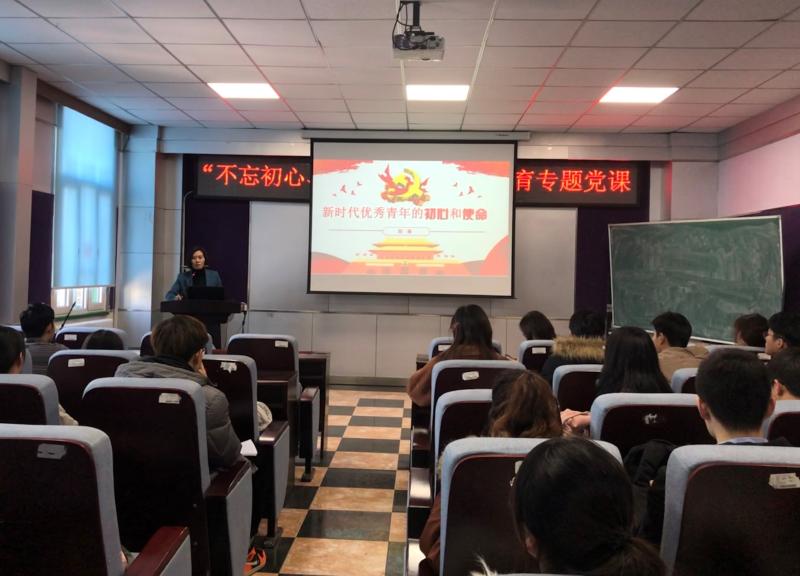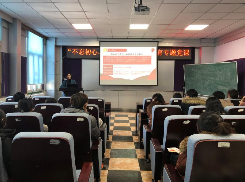 为贯彻落实中共中央的工作部署和《英国上市公司365开展“不忘初心、牢记使命”主题教育实施方案》的具体工作要求,深入开展“不忘初心,牢记使命”主题教育活动,beet365于11月20日中午在新民校区beet365办公楼三楼报告厅召开“不忘初心,牢记使命”专题党课活动。beet365党委副书记兼副经理、2019级辅导员刘丽为本科生党员及团学组织干部传达党的前沿思想理论。