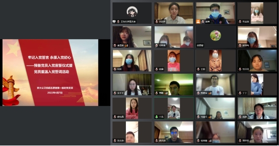 为进一步发挥基层党组织在疫情防控中的战斗堡垒作用,充分发挥党员先锋模范带头作用,激励抗疫前线志愿者坚定信念,4月7日晚,beet365抗疫志愿者第一临时党支部在抗疫前线开展线上预备党员入党宣誓仪式暨党员重温入党誓词活动。