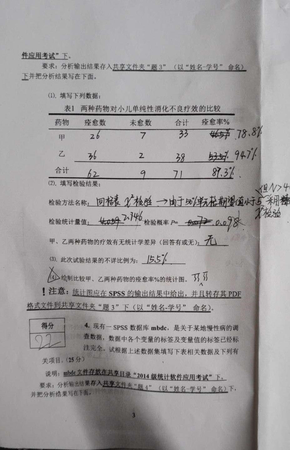 修改原因:卷面核分错误