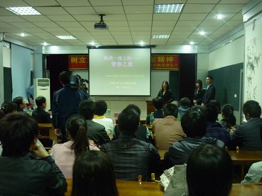 本次活动由两位员工主持人主持。首先观看了预先制作的吉林省抗洪救灾的视频资料,接着李想同学讲述了自己志愿抗洪的经历和感受,使在场的老师和同学无不为之感动,纷纷发表了自己的感想,体现当代老员工积极向上的精神风貌。