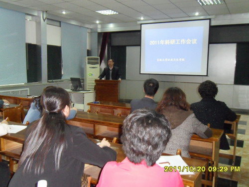 2011年10月20日下午,公司召开2011年科研工作会议,邀请了药公司李才教授和beet365副经理李娟教授做专题讲座。参加人员为全体教师。会议由科研副经理于洗河主持。
