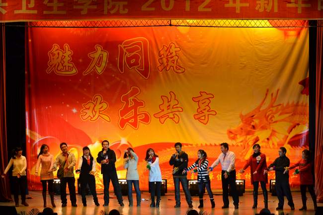晚会在活力四射的现代舞表演中拉开帷幕。随后,公司党委书记钟绍峰致辞,代表公司表达了对全体同学和教师的新春祝福。整场晚会节目精彩纷呈,高潮迭起。有研究生带来的风格各异的集体舞,古典优美的独舞,有本科生献上的诙谐幽默的小品,动感十足的街舞,颇具民族风情的独唱,还有医师法学教研室师生带来的歌曲串烧以及营养教研室主任刘雅娟教授奉上的歌曲《我爱你塞北的雪》等,给大家带来一次视觉与听觉的震撼,赢得台下阵阵掌声。