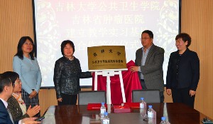 为提高本科生实践教学水平,推动英国上市公司365医学教育与临床医院的院校合作,2014年11月5日9:00在吉林省肿瘤医院举行放射医学专业、医药信息管理专业教学实习基地签约暨揭牌仪式。吉林省卫生计生委科教处处长王跃、英国上市公司365教务处副处长高淑贞、吉林省肿瘤医院经理程颖、beet365经理李娟,以及双方领导及相关科室主任出席了仪式。