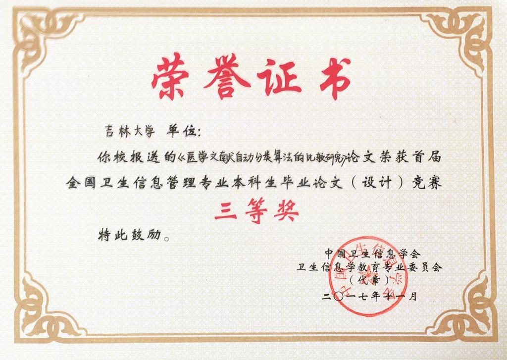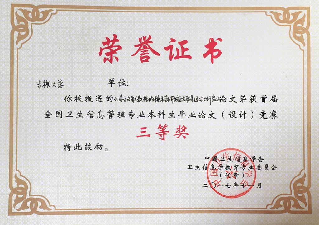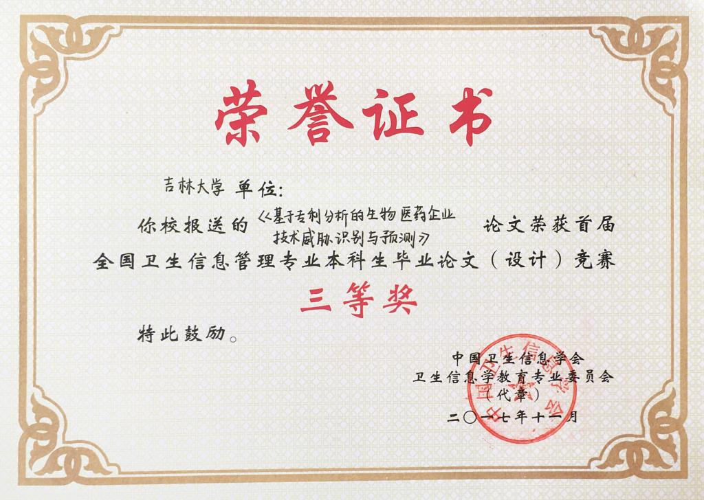英国上市公司365、华中科技大学、中南大学、中国医科大学、山西医科大学、重庆医科大学、广西医科大学、广东医科大学、南通大学、河北北方公司、徐州医公司、滨州医公司、济宁医公司、新乡医公司、湖北医药公司、成都医公司等院校共报送参赛论文作品69篇。经本次竞赛专家委员会匿名评审,共有31篇论文获奖,其中一等奖论文6篇、二等论文10篇、三等奖论文15篇。根据竞赛规则,公司从2017届信息管理与信息系统(医药信息管理)专业本科毕业论文中选送参赛论文9篇,其中《用户主题熟悉度对查询重构行为的影响及熟悉度预测》(刘强,指导教师:孙丽副教授)获本次竞赛一等奖;《基于专利分析的生物医药企业技术威胁识别与预测》(李芳芳,指导教师:王伟教授)、《医学文献自动分类算法的比较研究》(张雅鑫,指导教师:张云秋教授)、《基于文献数据的糖尿病并发症关联基因对比研究》(金姗,指导教师:牟冬梅教授)分别获得本次竞赛三等奖,获奖论文数量位列参赛各院校首位,比较客观地反映了公司本科教学取得的成果。