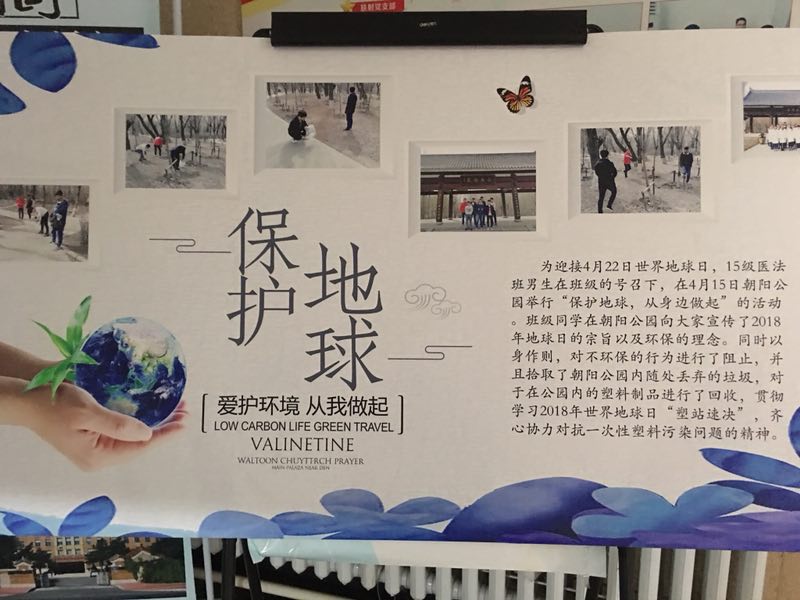 为迎接4月22日世界地球日,beet365医事法学专业特举办“保护地球,保卫家园”的宣传活动,本次活动以,2015级医事法学班的主题班会为主题,2015级医事法学班全体同学于4月15日在朝阳公园举行了“保护地球,从身边做起”的回收环保活动。同时,还积极制作世界地球日主题展板,并在beet365办公楼一楼大厅进行了汇报展示。这是医事法学专业的第二次系列活动。