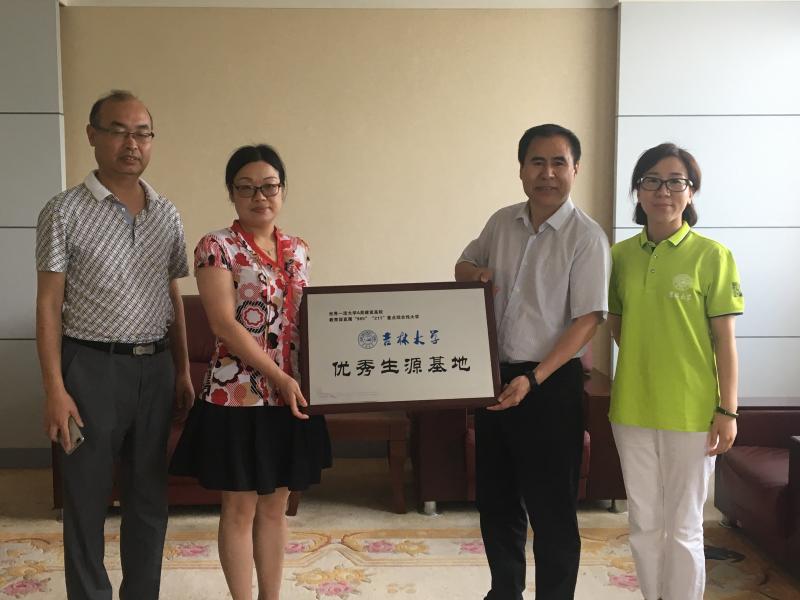 为了进一步扩大公司的号召力和影响力,将“双一流”高校的丰富内涵和精神风貌展现给优秀的高中生源基地,2018年6月23日—29日,beet365副经理于洗河一行6人组成的招生宣传工作组赴湖北省开展招生宣传工作,并于湖北省孝感高级中学、武汉市第一中学分别举行了“优秀生源基地”授牌仪式。