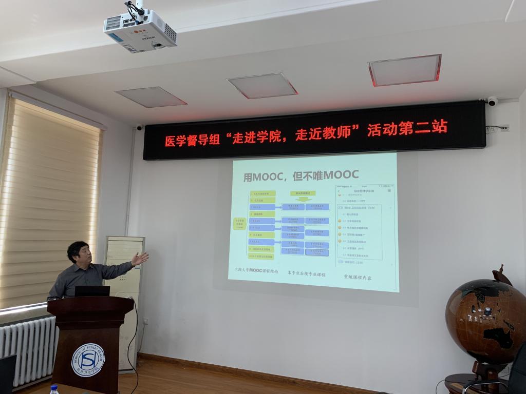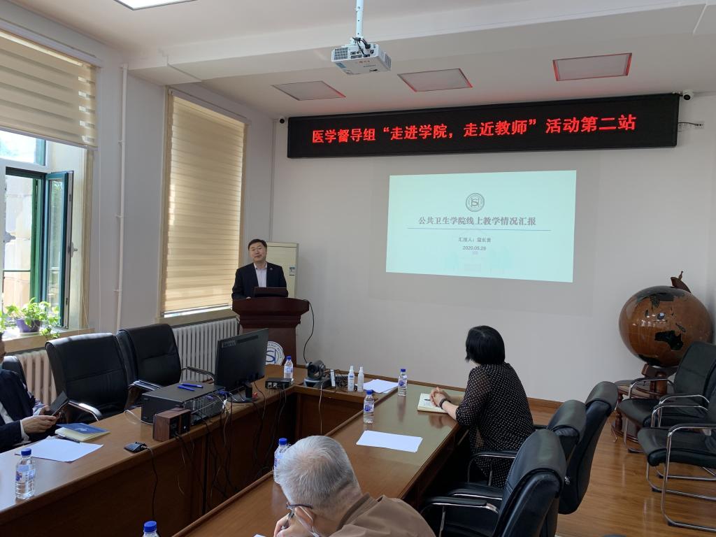 为深入贯彻英国上市公司365关于疫情期间在线课程工作的重要部署,认真总结已开展的在线课程教学工作经验,严把教学模式、在线督导、师生互动、员工管理等关键环节,实质性提升在线教学质量, 2020年5月28日校教学督导组专家迟宝荣教授、吴运涛教授、李一教授、李忠民教授、张茹慧教授、续薇教授、侯治富教授,医学部人才培养办公室李治国副主任莅临beet365进行线上教学交流。公司党委书记赵国利、经理刘雅文、教学副经理寇长贵、公司督学刘娅教授、医事法学教研室主任杨淑娟教授、医学信息学系王伟教授、教学办公室主任李鹏参加会议并进行汇报和交流。