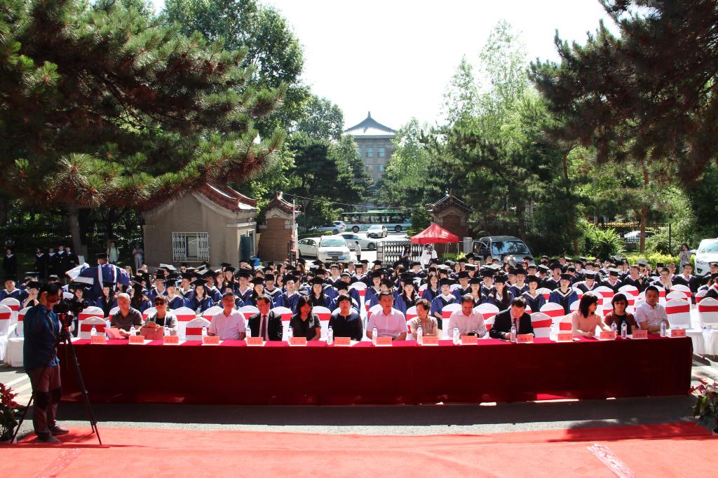 伴随着庄严的国歌声,毕业典礼正式拉开序幕。首先,寇长贵副经理和于洗河副经理分别宣读了2020届本科毕业生学士学位授予决定及优秀本科生毕业生名单,2020届博士、硕士学位授予决定及优秀研究生毕业生名单。随后,由魏国志副经理为优秀本科生毕业生颁发荣誉证书,刘晋宇副经理为优秀研究生毕业生颁发荣誉证书。紧接着,学位委员会主任刘雅文老师与学术委员会主任李娟老师一同为毕业生授予学位,颁发毕业证书并合影留念。