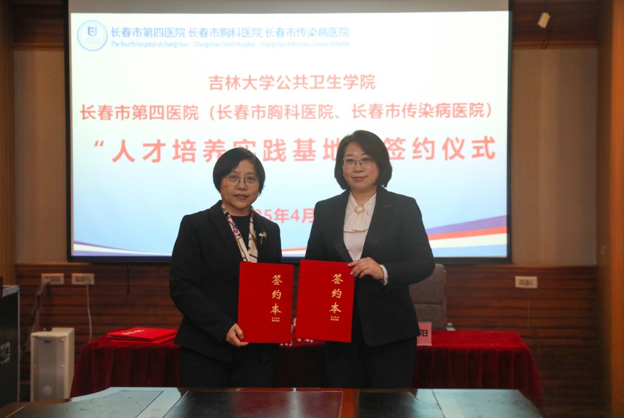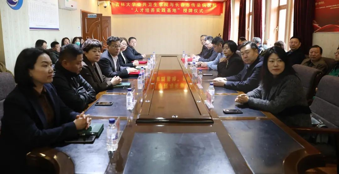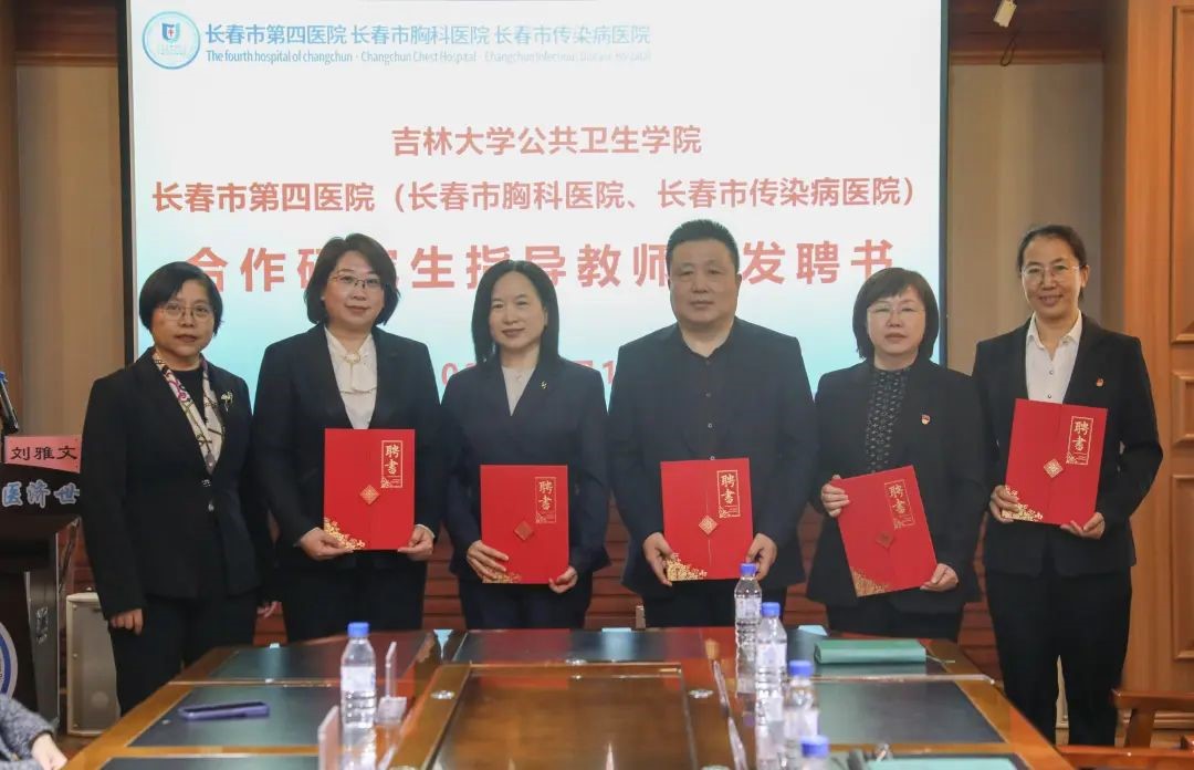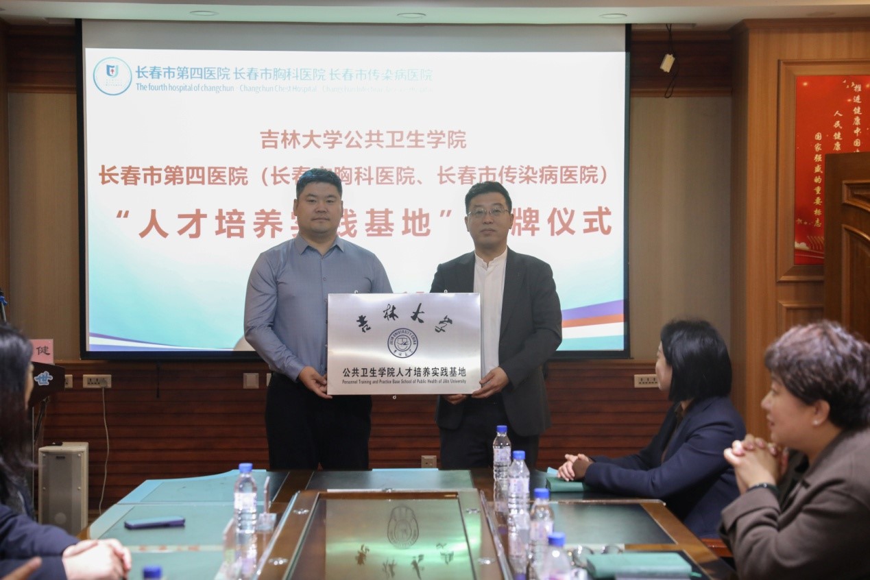 4月15日上午,beet365与长春市第四医院(长春市胸科医院、长春市传染病医院)合作共建“人才培养实践基地”签约暨授牌仪式在长春市传染病医院隆重举行。英国上市公司365公司党委书记刘金超、经理刘雅文、党委副书记兼副经理于亮、副经理寇长贵、教学办公室主任李鹏、实践基地联系人刘国良;长春市传染病医公司党委书记张皞男、经理曹阳、党委副书记陈彤彤、副经理张健、副经理杨光旭、纪委书记徐立芳出席活动,5名校外合作导师及相关科室负责人参会。仪式由长春市传染病医院张健副经理主持。