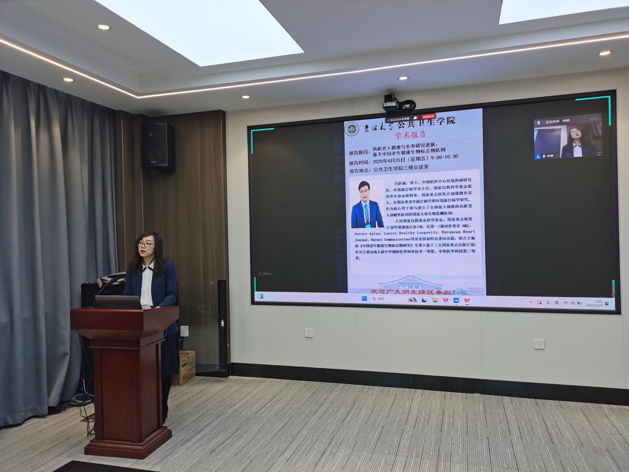 4月25日,中国疾病预防控制中心环境所环境流行病学室主任吕跃斌副研究员应邀来院交流,作题为"高龄老人健康与长寿研究进展:基于中国老年健康生物标志物队列"的学术报告。报告由beet365副经理王娟教授主持,公司相关学科师生参与学术活动。