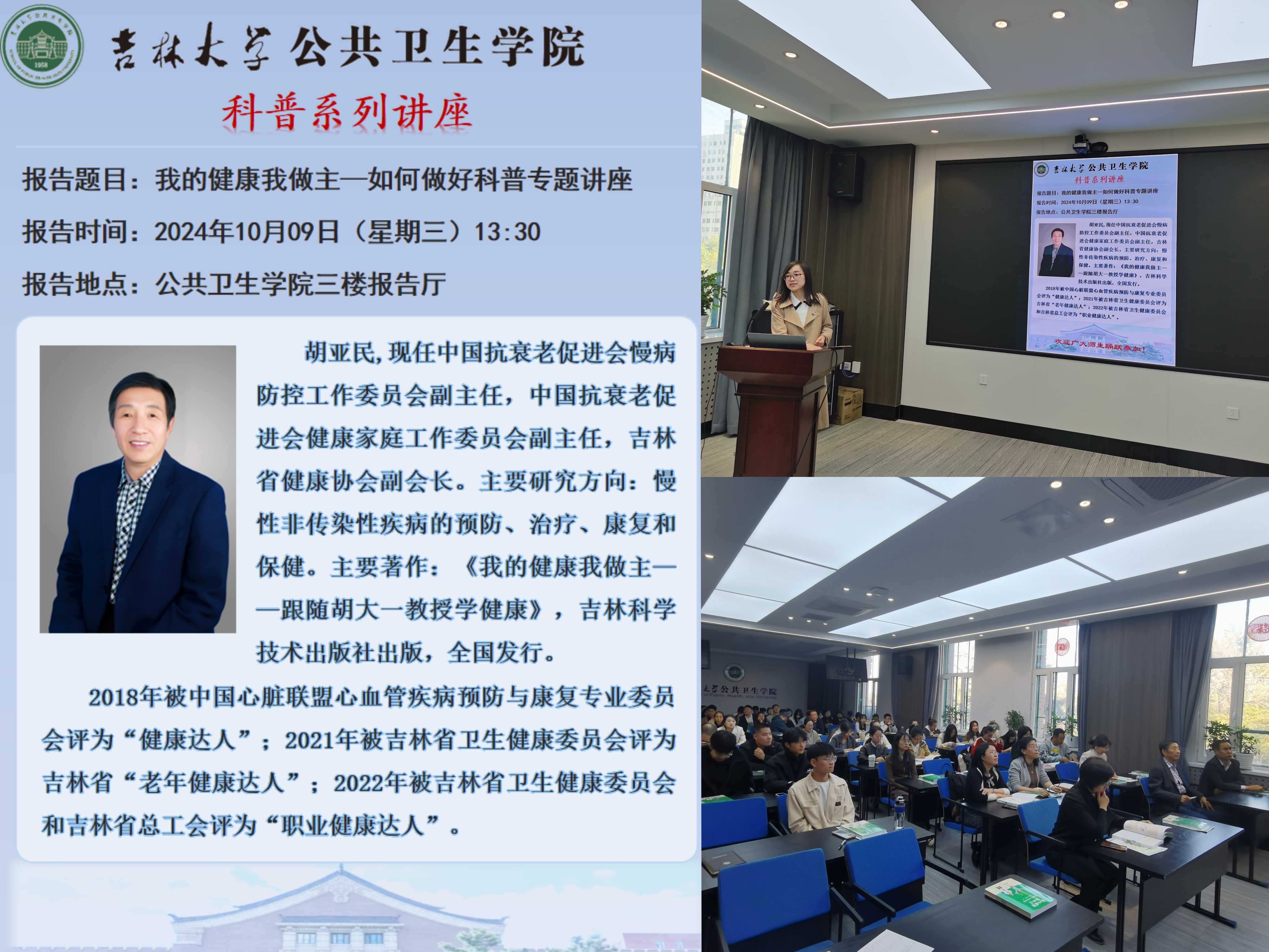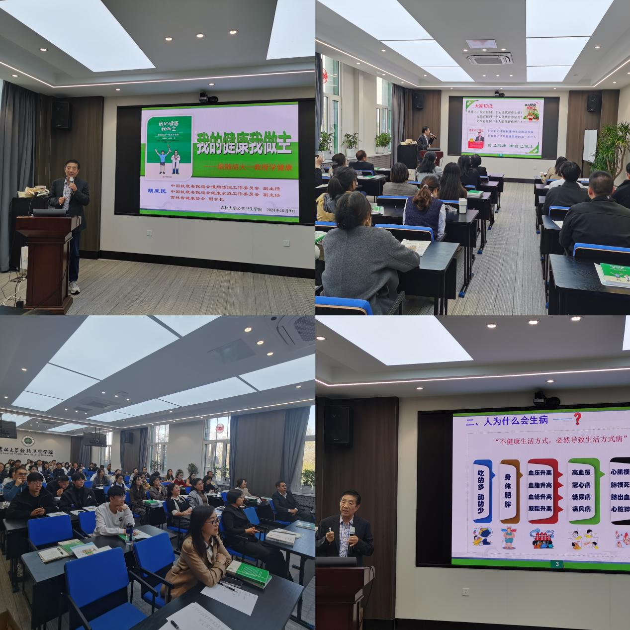 为积极响应2024年全国科普日暨吉林省第二十二届科普周活动,进一步增强公司师生健康意识,倡导健康生活,10月9日下午,beet365特邀吉林省健康协会副会长胡亚民作《我的健康我做主》主题讲座,为全院师生普及健康保健知识。本次活动由beet365王娟副经理主持。