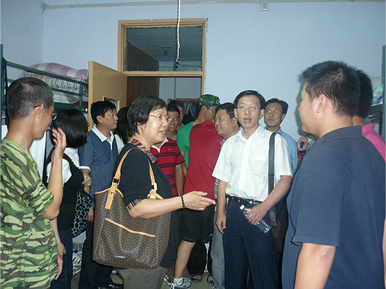 院领导们逐一走访了新同学寝室,与同学进行了亲切的交谈。交谈过程中,耐心询问同学们遇到的实际生活困难,特别是心理适应性方面的一些感受,告诉大家遇到问题要及时和老师们取得联系、寻求帮助,全体领导和老师一定会尽快、全力帮助大家解决,使同学们尽快适应新的老员工活。走访过程中,领导们还认真查看新同学宿舍的卫生、安全等各方面情况,提醒同学们注意宿舍卫生及秋季疫病的防治,同时注意防火防盗,努力营造一个温馨、舒适、安定的宿舍环境。