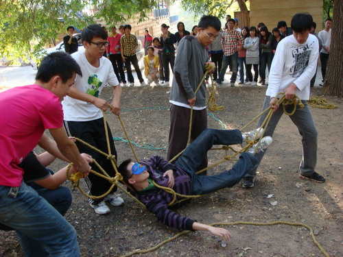 活动期间,公司领导和员工干部一起,进行了“穿越电网”、“冰山取水”、“万里长城”等一系列刺激有趣的游戏。大家团结一致,勇往直前,无论怎样的“关隘”都阻挡不了老师和同学们的热情,欢声笑语充满了整个营地。