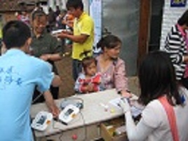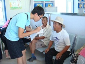 7月12号beet365暑期“三下乡”农民健康体检实践小组一行24人来到榆树市,在之后的四天里要在榆树市保寿镇黑林子村和闵家镇卫生院为农民进行健康体检。由于榆树健康体检人数较多,工作量比较大,要求待检农民早餐空腹,所以要求工作人员提前到场,指导老师和同学们都五点左右就起床,然后再车上把早餐解决,如果遇到道路特别远的起床还会更早。在这四天里,天气变幻莫测,刮风下雨阴晴不定,特别是黑林子村的条件比较艰苦,给活动带来了很大的困难,但是所有的队员没有一个说苦喊累的,都认真的完成自己的任务,咬牙坚持过来。在榆树“三下乡”的几天里,志愿者们为村民们量血压、血糖、体测,协助老师和医生采血、做心电,向他们讲述有关健康的知识;遇到血压、血糖不正常的村民,及时向他们普及健康知识,并告诉他们如何注意饮食和生活习惯,预防高血压和糖尿病的发生。
