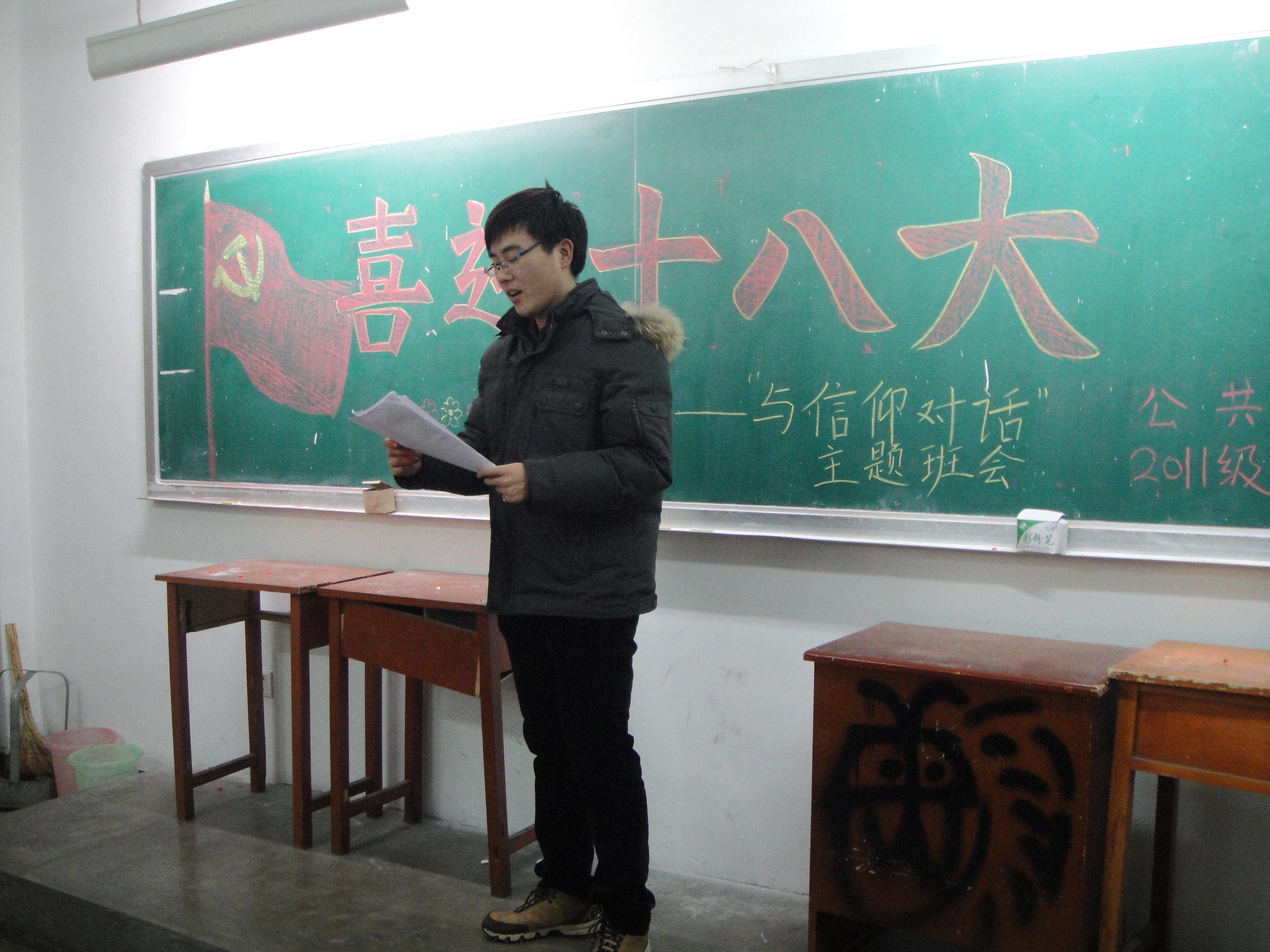 2012年11月17日,为响应英国上市公司365团委“与信仰对话,喜迎十八大——理论名篇名家推荐和理论经典研读”活动的号召,深入学习贯彻十八大精神,丰富同学们的精神文化生活,并帮助同学们把握正确的人生方向,beet365团委于新民校区第一教学楼106教室举办了“深入学习贯彻十八大思想,把握正确人生方向”主题交流会。2011级预防医学专业全体员工参加了此次交流会。