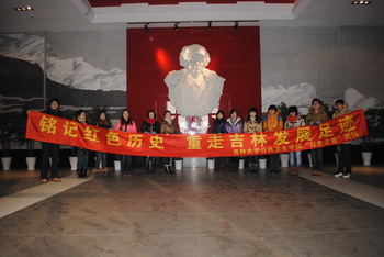 为了深入贯彻十八大精神,使同学们能更深入地学习革命精神,体会祖国近些年的快速发展变化, 2013年1月22日,beet365在寒假期间组织本院同学成立了“红色之旅”团队,展开了“铭·迹——铭记红色历史,重走吉林发展轨迹”系列活动。