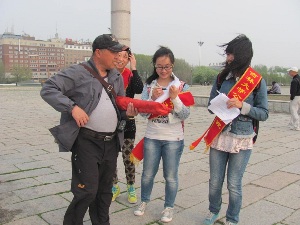 首先,同学们在文化广场中央拉上“燃烧的是香烟,消耗的是生命”的条幅,戴上绶带,吸引了在广场散心的市民的注意。然后,每位同学拿出事先准备好的禁烟倡议书,向市民讲解香烟的危害并请市民在倡议书上签字。大部分市民积极响应号召,认真阅读倡议书,在倡议书上签字。有些市民甚至当场扔掉香烟以支持此次禁烟活动。在同学们的解说下,他们认识到在公共场所吸烟是不道德的行为并保证在公共场合不再吸烟。最后,同学们在广场中央合影留念。