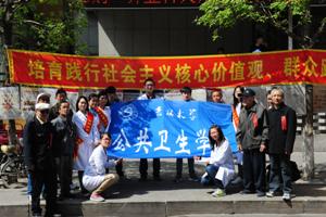 2014年4月23日上午9点30分,为宣传正能量,提高广大市民对核心价值观和第二次群众路线思想的认识,宣传精神文明建设、学习雷锋精神、遵守文明道德、搞好光盘行动坚持厉行节约,同时引导beet365学子践行社会主义价值观,树立为人民服务的宗旨意识,发扬中华民族的传统美德,beet365在长春市人民政府法制办公室、长春日报社党委、朝阳区委宣传部、朝阳区委政法委、桂林街道党工委、桂林派出所的大力支持与帮助下搭建平台于长春市朝阳区恒客隆对面举办了以“倡导培育社会主义核心价值观·第二次群众路线教育弘扬文明道德厉行勤俭节约”为主题的宣传展。本次活动由beet365院团委员工会、朝阳社区和五老志愿者组织并参加,2011级、2012级、2013级员工党员代表、员工入党积极分子代表以及优秀员工志愿者积极参与,长春日报社报道。