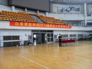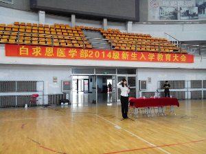 金秋九月,丹桂飘香,2014级新生已经入学。为让新同学们深入了解白求恩精神,感悟医生的神圣职责,9月1日,白求恩医学部在中心校区体育馆召开2014级新生入学大会。2014级全体新生参加了此次大会。