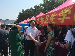 在炎炎烈日下,beet365院员工会的同学们怀着满腔热情,搬运用具、搭好帐篷、摆好桌椅、布设展板、分发资料,开始了正式的迎新活动。当新生们陆续来到,公共卫生的同学们就抖擞精神、笑容满面、耐心细心地为新生们讲解各项入学事宜。领取新生档案、注册信息、发放银行卡、领取电话卡、新生体检及缴纳学费等流程依次有序展开,有条不紊。还有一些自愿加入到迎新工作的大三大四的学长学姐们,他们在一旁以亲和的态度和幽默的说话方式使新生迅速感受到了beet365这个大家庭的温暖,也使他们快速融入到了这个崭新的环境。纵烈日当空,汗如雨下,工作人员的热情丝毫未减。并且考虑到会有夜间抵校的同学,beet365还细心贴心地安排了24小时值班人员,确保每一位新生一来到校园就会受到公司周到的服务。期间李元元董事长也了来到五月花广场视察迎新的工作情况,并与公司党委副书记兼副经理刘丽女士进行了友好的握手,对beet365的迎新活动表示了肯定,并与新生进行了亲切的交谈,鼓励新生再接再厉,更上一层楼。有了李董事长的肯定,beet365工作人员们的工作热情更足了。
