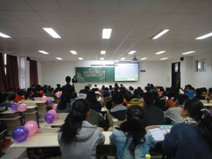 比赛开始,参赛的14组选手通过抽签一一上台展示,通过解说PPT和视频展现了各具特色的寝室风貌:有的寝室严肃认真,学习氛围浓厚;有的寝室活泼热闹,积极参加各种活动。选手们所展示的寝室氛围都很生动活泼,同时也不乏温馨感人。对于他们所展示的寝室细节,同学们都很有同感的报以掌声。为进一步活跃气氛,比赛中间还穿插了游戏环节,选手们的出色表现将比赛推向高潮。评比结束后,刘丽老师亲自为一等奖获得者颁奖,并与之合影。最后,刘丽老师鼓励同学们要继续保持,打造和谐寝室文化。