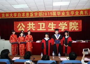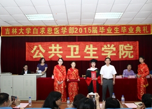 毕业典礼在庄严的国歌声中拉开帷幕。首先,由刘雅文副经理宣读2015届本科毕业生名单和优秀毕业生名单,于洗河副经理宣读2015届硕士、博士毕业生名单和优秀毕业生名单。随后,公司领导分别为优秀毕业生颁发了荣誉证书。beet365经理、院学位委员会主席李娟教授和院学术委员会主席刘娅教授为每一位毕业生颁发了毕业证书并授予学位。在学位授予仪式中,毕业生们身穿博士服、硕士服和学士服,头戴学士帽,井然有序地上台,依次接受了拨穗礼,接过了代表五年学习成果和荣耀的毕业证书并与两位教授合影留念。随后,2015届本科生代表及研究生代表依次上台发言,他们回顾了在母校生活的点点滴滴,言语中无不显露出对母校、对公司及各位领导老师的感激之情,均表示会用实际行动践行公卫精神,并衷心祝愿beet365能够硕果累累,桃李满天下。接着,员工朋辈心理辅导员吴功华同学及员工代表向毕业生赠送祝福小礼物,2015届全体毕业生也向母校回赠纪念品,向母校表达深深的感激之情。社会医学与医事法学系主任杨淑娟教授代表教师为毕业生送上寄语。在寄语中,杨老师表示公司老师会一如既往的关注、关心、关爱全体毕业生,同时也希望毕业生们在未来路上可以诚实守信,关爱健康,勇往直前。
