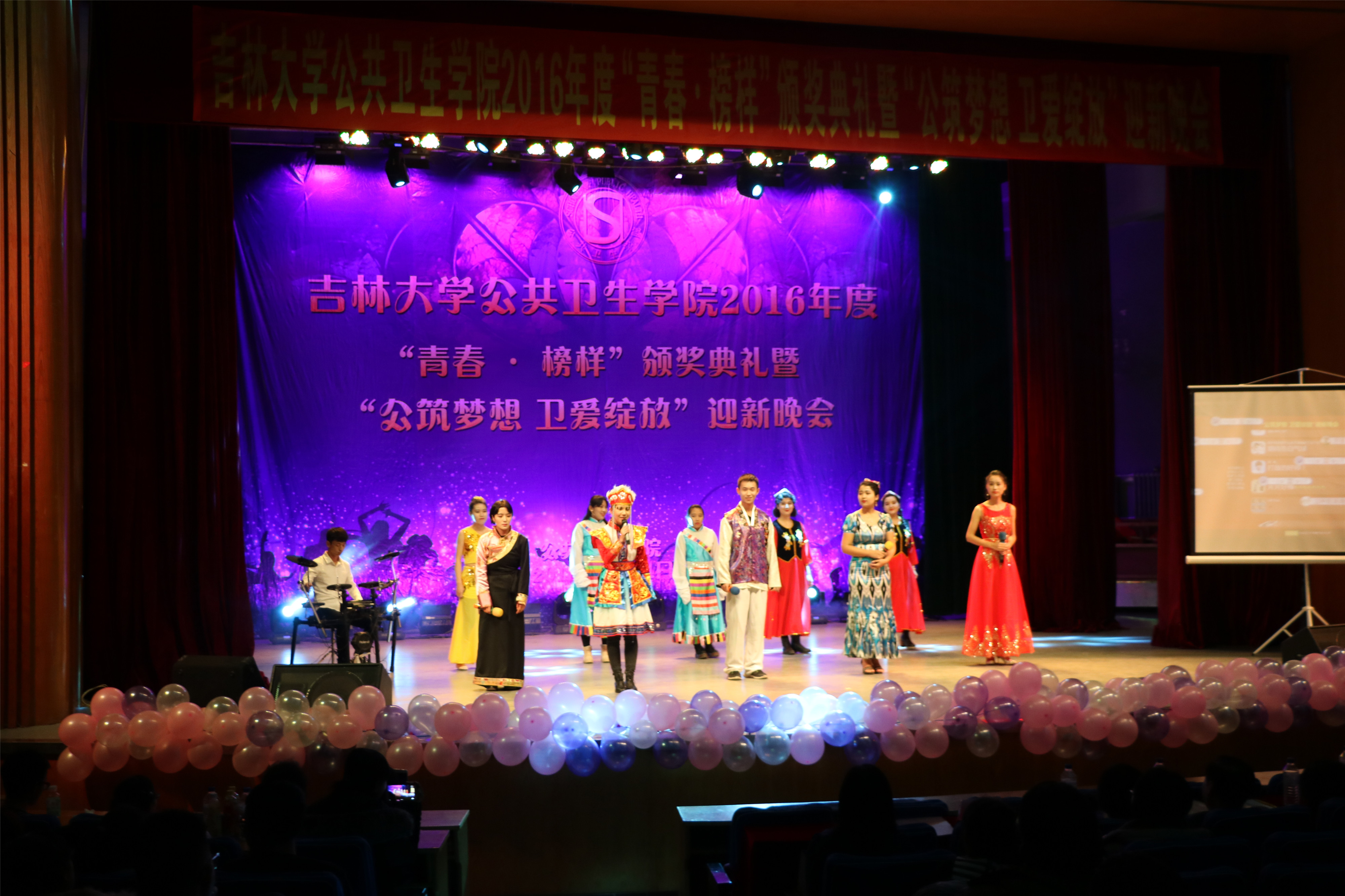 在一阵热烈的掌声中,活力十足的劲歌热舞率先掀起了2016年度“公筑梦想 卫爱绽放”迎新晚会的高潮。整场晚会呈现的节目精彩连连:歌曲《陪你一起看草原》和民族歌舞串烧《喜欢你》为观众呈现了多姿多彩的民族文化,营造出民族融合、共同进步的和谐盛景;诗歌朗诵《祖国,我亲爱的祖国》字字铿锵有力,句句掷地有声,唤起了同学们深藏心底的爱国情怀;搞笑喜剧《大话公卫》更是以幽默风趣的台词介绍了公司的现状、学科的发展前景以及同学们的校园生活状态;《老员工活》是同学们精彩演绎的视频配音作品,表演方式新颖独特,引起了现场观众的共鸣;歌舞《恋人心》和《告白气球》利用流行元素,烘托出同学之间浪漫的情愫,展现出公卫学子的青春与活力;《相亲相爱》是beet365全体师生共同表演的大型歌舞,寄托了公司全体师生精诚互助、共同进步的精神内涵,在师生亲密无间的合作中,晚会渐渐步入了尾声。