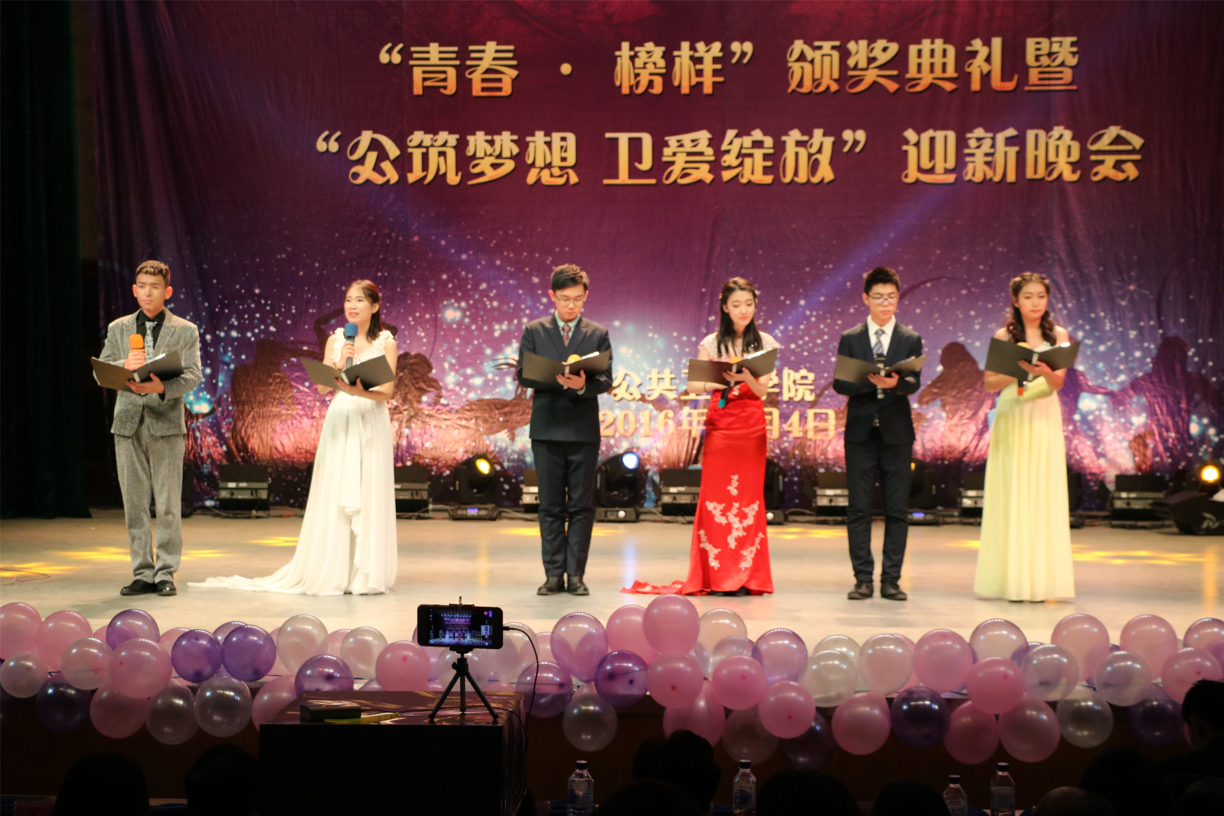 12月4日晚上六点整,2016年度“青春·榜样”颁奖典礼暨“公筑梦想 卫爱绽放”迎新晚会在南湖校区小礼堂正式拉开了帷幕。beet365经理李娟,党委书记钟绍峰,副经理刘晓冬、于洗河、刘汉君、刘雅文,党委副书记兼副经理、2014级辅导员刘丽以及全体教职员工,2014级、2015级、2016级全体本科生和部分研究生代表应邀出席了活动。