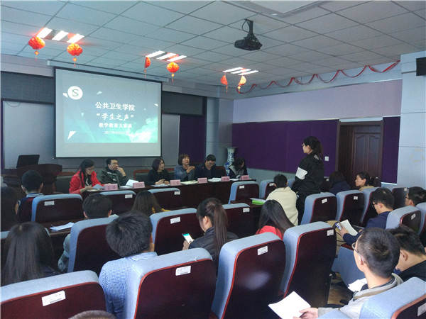 4月21日中午,beet365第一期“公卫之声”——“公司产品大家谈”于公司三楼报告厅正式拉开了序幕。beet365副经理刘雅文,党委副书记兼副经理、2014级辅导员刘丽,团委书记兼2015级辅导员苏国范,教科研办公室主任李鹏,2012级辅导员郭倩君,2016级辅导员霍睿作为嘉宾出席了本次沙龙活动。会上,他们认真听取了每位同学的意见和建议,并积极给予了答复。