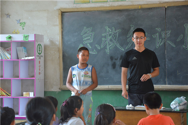 7月14日,是beet365河北唐县社会实践小分队“寻根之旅”的第四天,也是志愿者们在葛公村希望小学开展支教活动的第二天。经过前一天有趣地学习和愉快地相处,孩子们的学习热情和积极性都空前高涨。距离上课还有十多分钟,教室里已然座无虚席。50余名小员工端端正正地坐在自己的座位上,一个个都翘首期盼,亮晶晶的大眼睛里闪烁的是满满的求知欲。在这样良好的氛围下,伴随着清晨的第一缕阳光,一场别开生面的“急救知识小课堂”正式开课了。