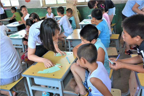 下午的教学活动中,志愿者通过启发的方式,鼓励小朋友们给父母写一封信,表达自己对他们的感恩与爱。大部分小朋友很快就开始动笔,刷刷地在纸上写着,但也有少数小朋友抓耳挠腮,志愿者和他们进行了进一步交流,发现这些小朋友的父母大多离开村子,到大城市去打工以贴补家用,像我们在新闻中了解到的外地务工人员一样,一年回家的次数屈指可数。这些“留守儿童”对他们父母既充满了思念,又委屈于没有父母的时时陪伴,有的小朋友的泪珠还打湿了稿纸,让志愿者们的心难过地揪在了一起。对这些孩子,是既心疼,又无奈。书信课的最后,志愿者向表现出色的孩子赠送了英国上市公司365医学部的明信片,并向他们介绍白求恩医学部的魅力,鼓励他们好好学习,考上理想的大学。