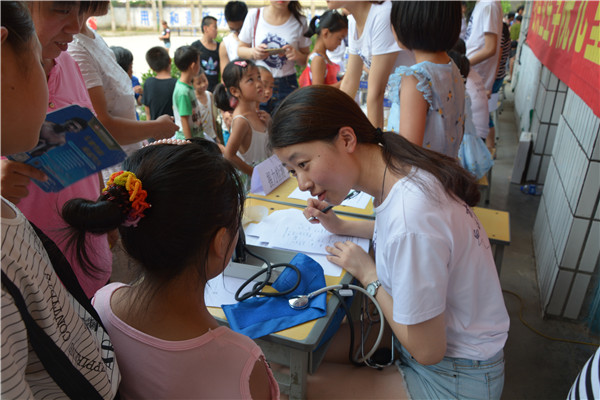 7月17日,beet365河北唐县社会实践小分队在葛公村希望小学继续开展支教活动。当日下午,志愿者为葛公村50余名青少年进行了免费体质与智力健康检测活动,并协助英国上市公司365第一医院医疗队为当地村民进行了义诊服务。英国上市公司365党委书记杨振斌一行前来葛公村慰问,高度肯定了公司师生的志愿服务工作,并与志愿者握手、合影,鼓励同学们好好学习医学文化知识、日后尽最大可能服务社会,将“毫不利己,专门利人”的白求恩精神永久传承下去。