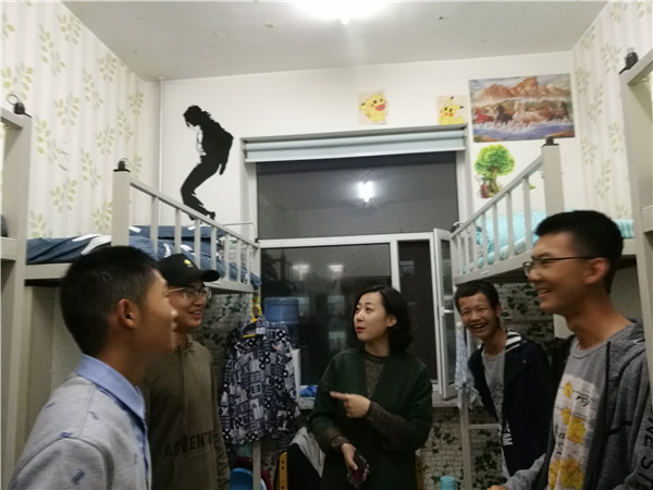10月8日晚,beet3652017级员工辅导员郭倩君在员工会生活部部员的陪同下,对中心校区的北苑一公寓男生寝室以及文苑四公寓女生寝室进行首次卫生检查。