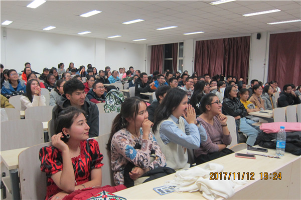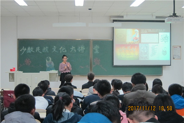 为向同学们普及少数民族的风俗习惯和民族文化, 11月12日晚,在beet365员工会少民部的组织下,少数民族大讲堂活动于英国上市公司365前卫南区李四光教学楼107教室如期举办,本次活动邀请了3位来自新疆的同学,为同学们详细地介绍了维吾尔族的衣食建筑、风俗习惯、传统节日以及民族文化,beet3652017级全体同学参加并认真聆听了他们的讲解。