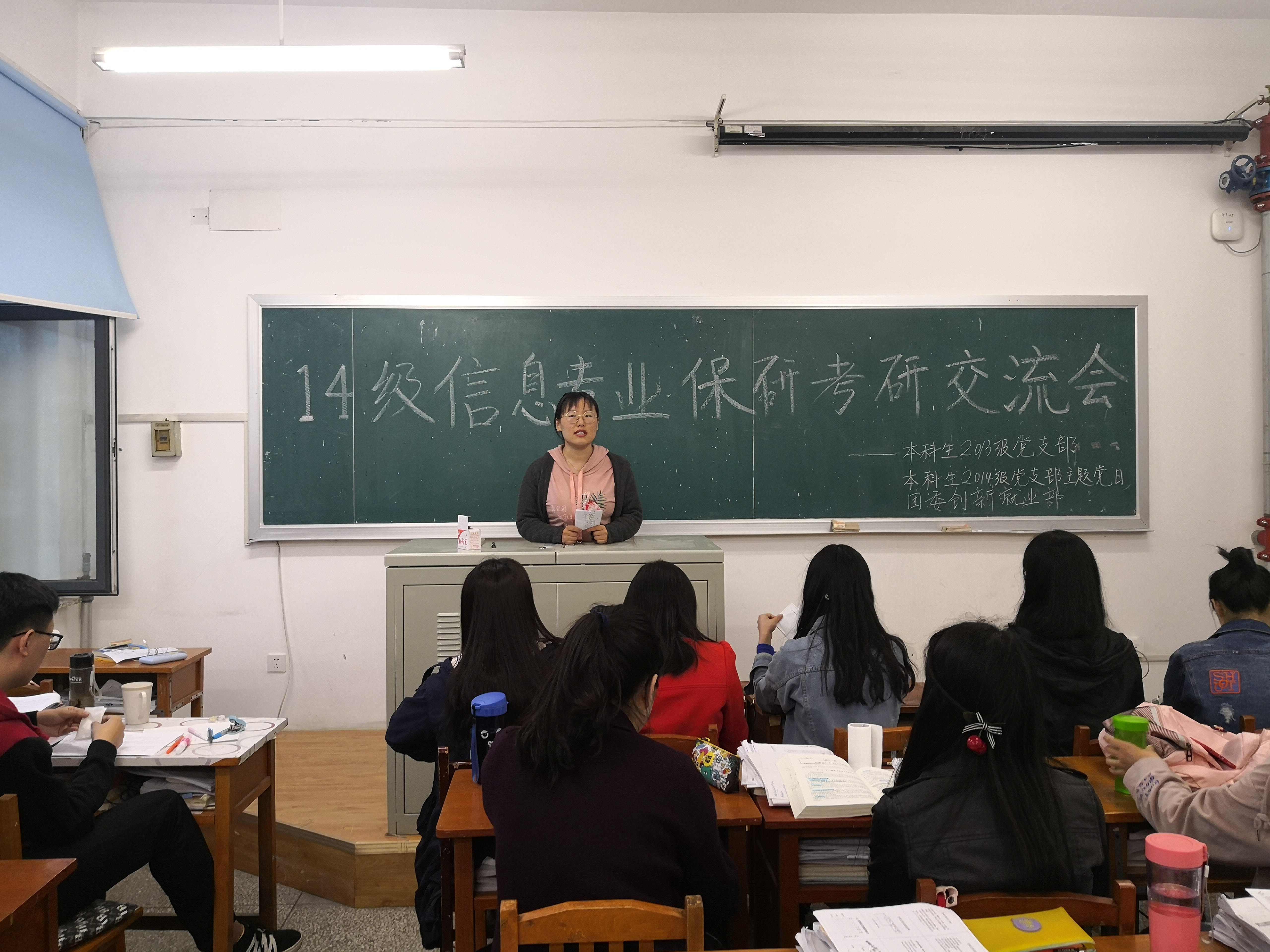 为解决同学们对考研、保研的疑惑,4月23日晚6点,beet3652013级本科生党支部、2014级本科生党支部与公司团委创新就业部于新民校区第一教学楼404教室联合开展了针对2014级医药信息管理专业本科生的保研、考研经验交流会。2014级医药信息管理专业全体同学、2015级和2016级部分同学参加了此次会议。同学们热情高涨,表现出了大家对考研、保研相关事情的重视。