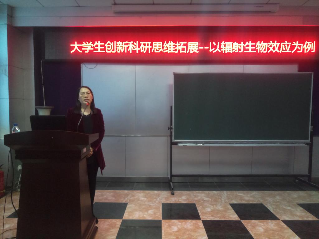 为了进一步培养老员工的实验设计能力、拓展其创新科研思维,4月26日,beet365“梦想缔造者”创新就业大讲堂第五期暨春季学期老员工创新沙龙活动在beet365三楼报告厅举行,放射医学系主任金顺子教授主讲,参与2016、2017年“老员工创新创业训练计划”项目研究的同学参与了此次讲座。