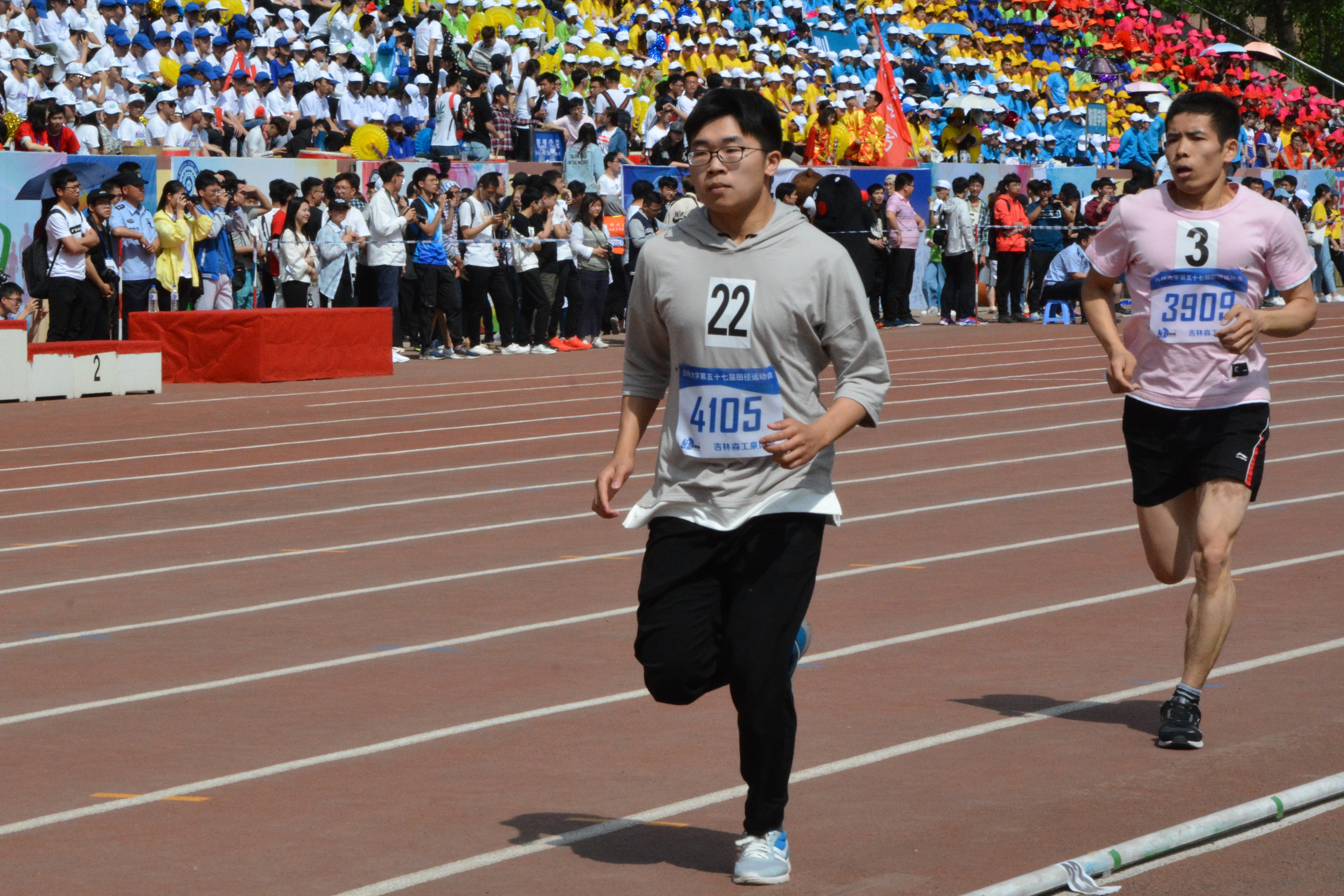 天朗气清,选手们在裁判的指挥下有序地检录入场,站在各自的跑道上,信心满满,整装待发。随着施令枪声响起,运动员们立即起跑,冲向终点。在观众们呐喊助威声里,运动员们鼓足了气,向终点奔跑。尽管汗水淋漓,气喘吁吁,却没有一个人放弃。凭借拼搏的精神和顽强的毅力,选手们迈着坚定的步伐向前奔跑,坚持不懈。经过不懈的努力,两名选手都获得了不错的成绩。