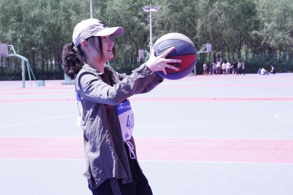小小的一颗球,寄托着希望,奋力一抛的瞬间,一道闪亮的弧线划破美丽的长空,刺破炎炎烈日。女选手们身着个性鲜明运动衣,目光坚定的,整齐地排成一排,有序地进行着女子员工组一分钟定点投篮大赛。比赛开始前,4130号选手罗慧佳同学在有条不紊的进行着赛前的准备工作,深吸气,缓呼出,调整着呼吸,她的目光坚定而又执着。当听到裁判哨声,比赛计时一分钟开始。身高的优势与运动会前刻苦训练让她在比赛中发挥得更好,罗慧佳膝盖稍曲、起跳、出手,干净利落,篮球毫不犹豫向篮筐飞去。一分钟定点投篮比赛,可谓巾帼不让须眉。她起跳,投篮,每个动作都接近完美,每次出手都细心瞄准,每个错过的球都会仔细记在心里,吸取经验调整力度和角度。