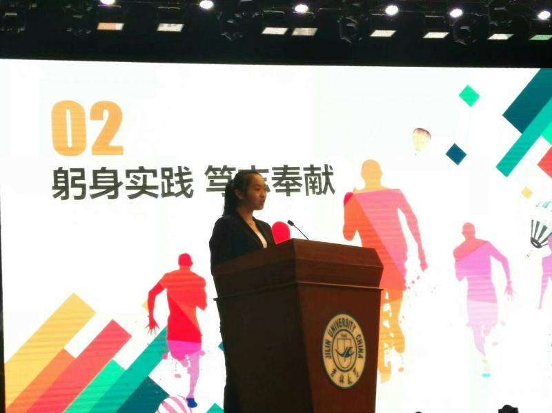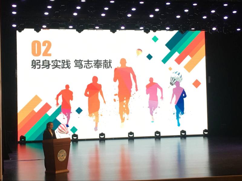 紧接着,白求恩医学部2018级全体新生起立背诵《纪念白求恩》,以表达对白求恩同志的敬仰与追思。白求恩医学部各公司分别派出员工代表,对“重走白求恩之路”暑期社会实践活动作总结发言。其中,beet365员工代表金晶向与会的各位领导和同学们介绍了在河北唐县葛公村的实践经历,讲述了白求恩精神带来的收获与感动,引发了全场强烈共鸣。