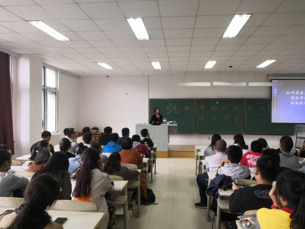 秋风飒爽,beet3652018级新生们即将正式进入到老员工活,为让新生们明确大学目标、更好地规划大学的学习和生活。8月29日,beet365在中心校区李四光教学楼204教室开展2018级新生“爱校荣校”校规校纪教育大会,公司党委副书记兼副经理、2014级辅导员刘丽担任主讲人。