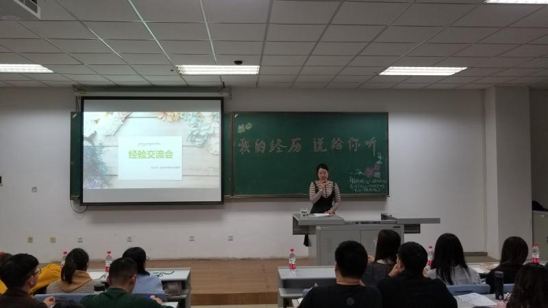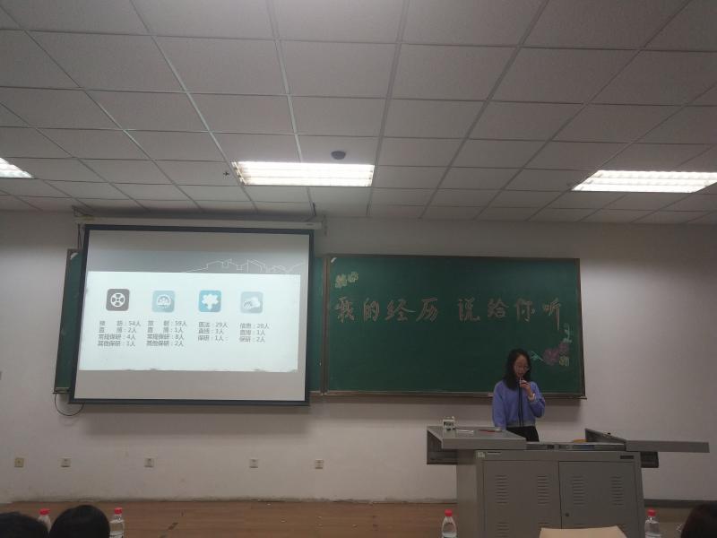 首先,霍睿老师向在场的同学们简单介绍了2014级优秀员工代表的基本情况,并向她们的到来表示热烈的欢迎。随后,2014级优秀员工代表们依次上台向同学们介绍和分享自己的研究生推免经验,有的谈到了如何参加拟报考公司的夏令营获得推免资格;有的谈到了如何联系到适合自己研究方向的导师;有的谈到了具体的复习和考试经验。与此同时,她们都强调了平时认真学习和积累知识的重要性,鼓励同学们制定科学的复习计划,形成自己的知识框架,有条不紊地学习。从她们精心准备的幻灯片和现场认真恳切的言辞中,在场的同学们不仅获得了宝贵的学习经验,还端正了自己学习的态度,明确了学习方法。