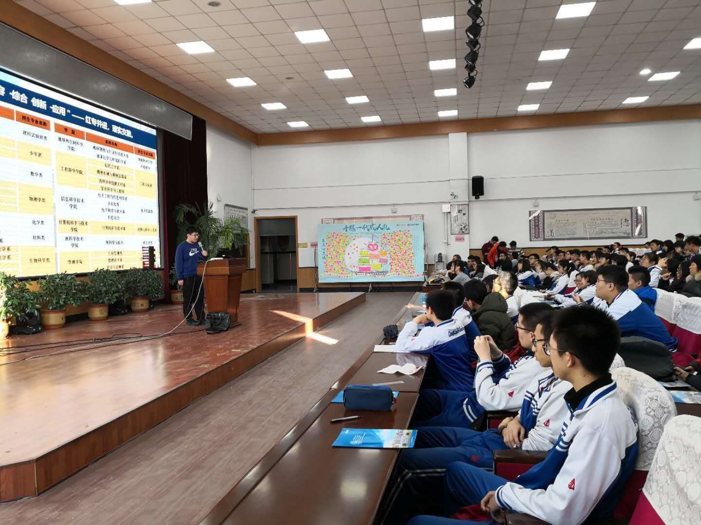 1月25日,“百年吉大,携手筑梦”招生宣传活动如约在长春市第十一高中顺利展开。2018级部分本科生走进十一高中,受到了校领导的高度重视和高三员工的热烈欢迎。宣讲过程中,队员们就高三员工关心的问题做了精彩的讲解,又走进班级,和实验班的同学进行了面对面的问答互动。