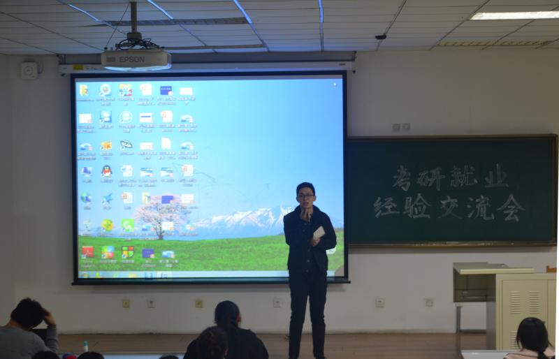为帮助同学们更加深入的了解当前考研形式,分析现阶段的就业状况,提高自我认识与就业能力,认清当前各专业的就业优势和就业方向,更加注重自己的大学成长和未来人生规划,4月15日晚,由beet365员工会创新就业指导部主办的考研就业经验交流会在新民校区第二教学楼2201教室召开,2014级张亚、郑颖彦、刘一婷等10余名优秀员工代表受邀进行了经验分享,2015级、2016级及2017级的部分员工参与了本次活动。