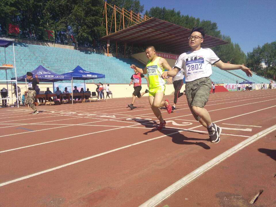 比赛前,运动健儿们个个精神饱满,摩肩擦掌,做着压筋、压腿等热身动作。跑道之外,同学们纷纷为自己公司的运动员加油、呐喊,现场气氛十分热闹。吕博文在第五组出场,位于第二赛道。发令枪声响起,蓄势待发的运动员们如离弦的箭一般冲了出去,公司选手亦展现出他优秀的爆发力,在最初的十米中处于领先位置。在随后的加速阶段,吕博文同学仍然保持着前二的优势,速度未曾减慢,但其他参赛选手也奋起直追,彼此的差距在逐渐缩小;在最后的冲刺阶段,吕博文的体力稍有不支,最终以小组第四名的成绩冲线。