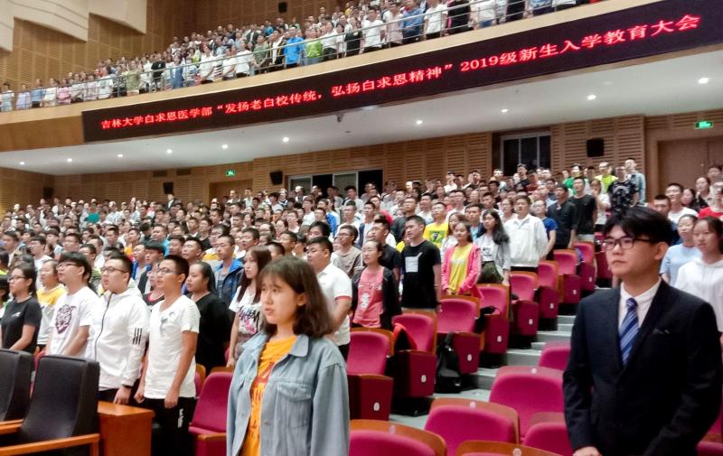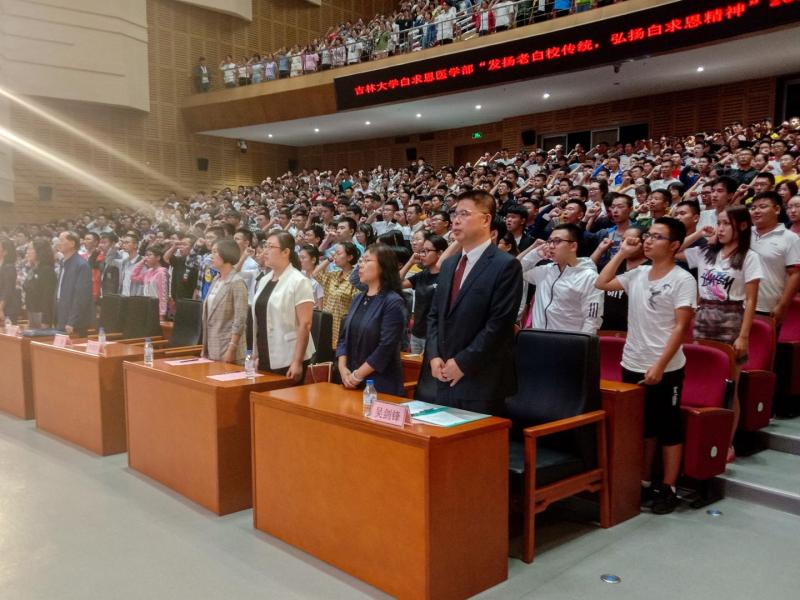 为了发扬老白校传统,弘扬白求恩精神,同时增强新生对白求恩医学部的历史认知和自豪感,8月26日上午九时,白求恩医学部在中心校区鼎新大礼堂举办2019级新生入学教育大会。白求恩精神研究会常务副会长马国庆、白求恩医学部学部长李凡及全体学部领导、医学部各公司主管本科生工作副书记、医学部学工办全体成员、2019级新生辅导员、辅导员助理以及全体新生出席了本次大会。白求恩医学部员工工作办公室主任吴剑锋主持了本次大会。