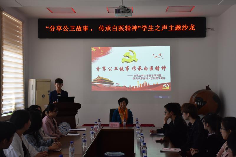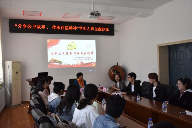 为搭建一个帮助同学们解答疑惑的平台,让同学们了解更多公司及公司的光辉历史,更好地投身于传承白医精神的事业上来,在英国上市公司365医学学科暨原白求恩医科大学创建八十周年来临之际,9月17日上午,beet365第十六期“员工之声”主题沙龙在公司二楼会议厅举行。本次沙龙活动的主题为“分享公卫故事 传承白医精神”,与会嘉宾有beet365原学办主任吴晓辉、2017级辅导员冷贺璇、2015级优秀员工代表朴佳瑶和刘亦萍。2016级、2017级、2018级员工代表参加本次座谈。