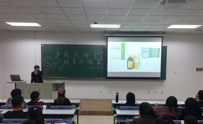 祖米热提古丽同学则从传统服饰、节日服装、艾特莱斯和花帽等方面对维吾尔族服饰进行了详细的介绍,使同学们对维吾尔族有了崭新的认识。两位同学风趣生动的介绍赢得了大家热烈的掌声。此外,活动还设有奖竞答环节,同学们踊跃参加,正确作答,获得由少民部准备的极具维吾尔族特色的精美小礼物。