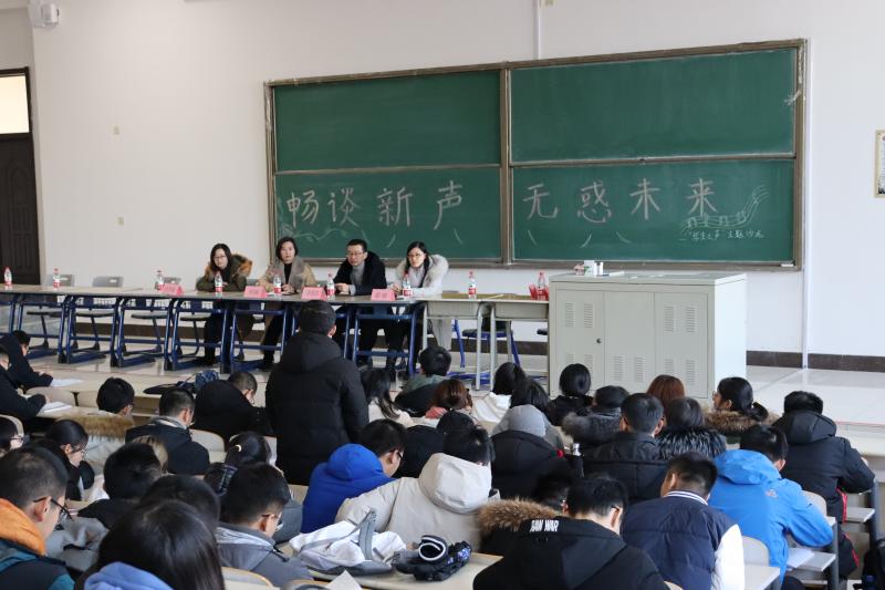 为解答2019级新生在专业学习和老员工活等方面的疑惑,使新生更好地适应老员工活,beet365于12月4日在英国上市公司365中心校区李四光教学楼第一阶梯教室举办了“畅谈新声,无惑未来”员工之声主题沙龙活动。公司党委副书记兼副经理、2019级辅导员刘丽,员工工作办公室主任兼2015级、2018级辅导员苏国范,2016级辅导员霍睿,2017级辅导员冷贺璇以及2019级各班兼职班主任出席活动,2019级全体新生参加了本次活动。